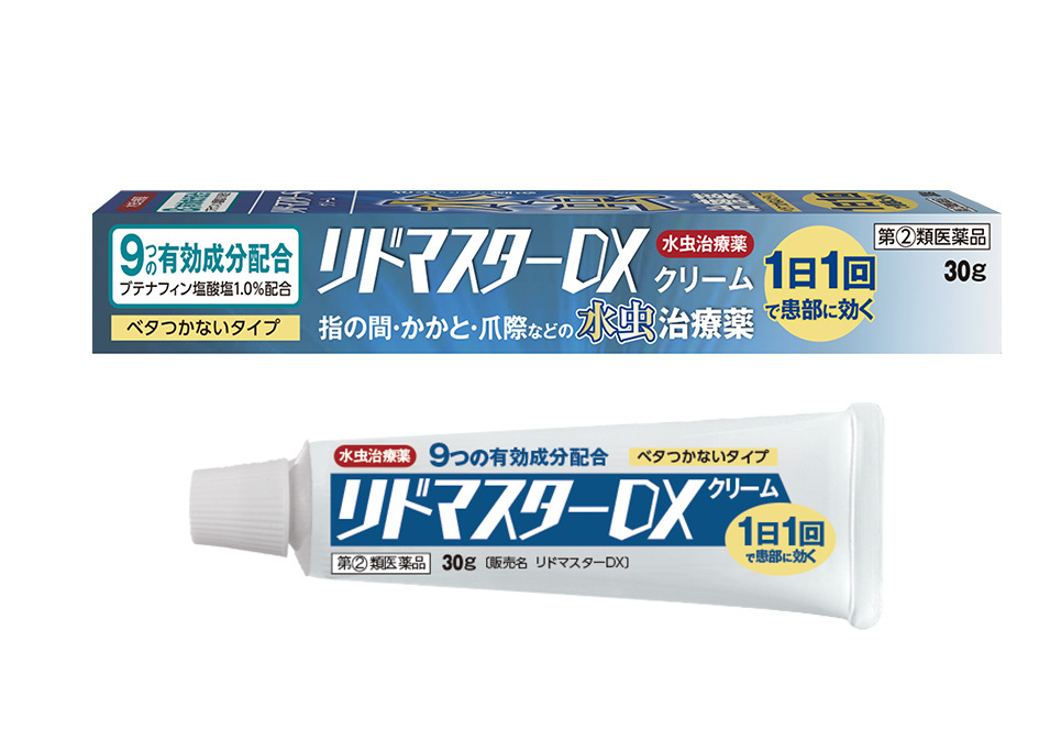 水虫・たむしは、白癬菌というカビが皮膚の角質層等に寄生して起こる皮膚病で、かゆみや痛みを伴うことが多くあります。リドマスターDXには8種類の有効成分を配合。1日1回の使用により、白癬菌を殺菌し、かゆみや痛みを伴う(水虫・たむしの)不快な症状を改善します。